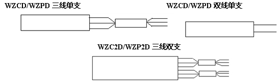 例1:WZPD-2×10×60-3D-0-Pt100表示:電機(jī)用鉑電阻溫度傳感器、本體尺寸2×10×60mm,3根引線,每根引線長(zhǎng)度2000mm,引線屏蔽,分度號(hào)為Pt100。