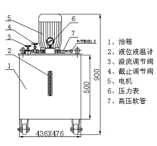 8、油 箱尺 寸:430X470X500; 外形尺寸:436X476X900;